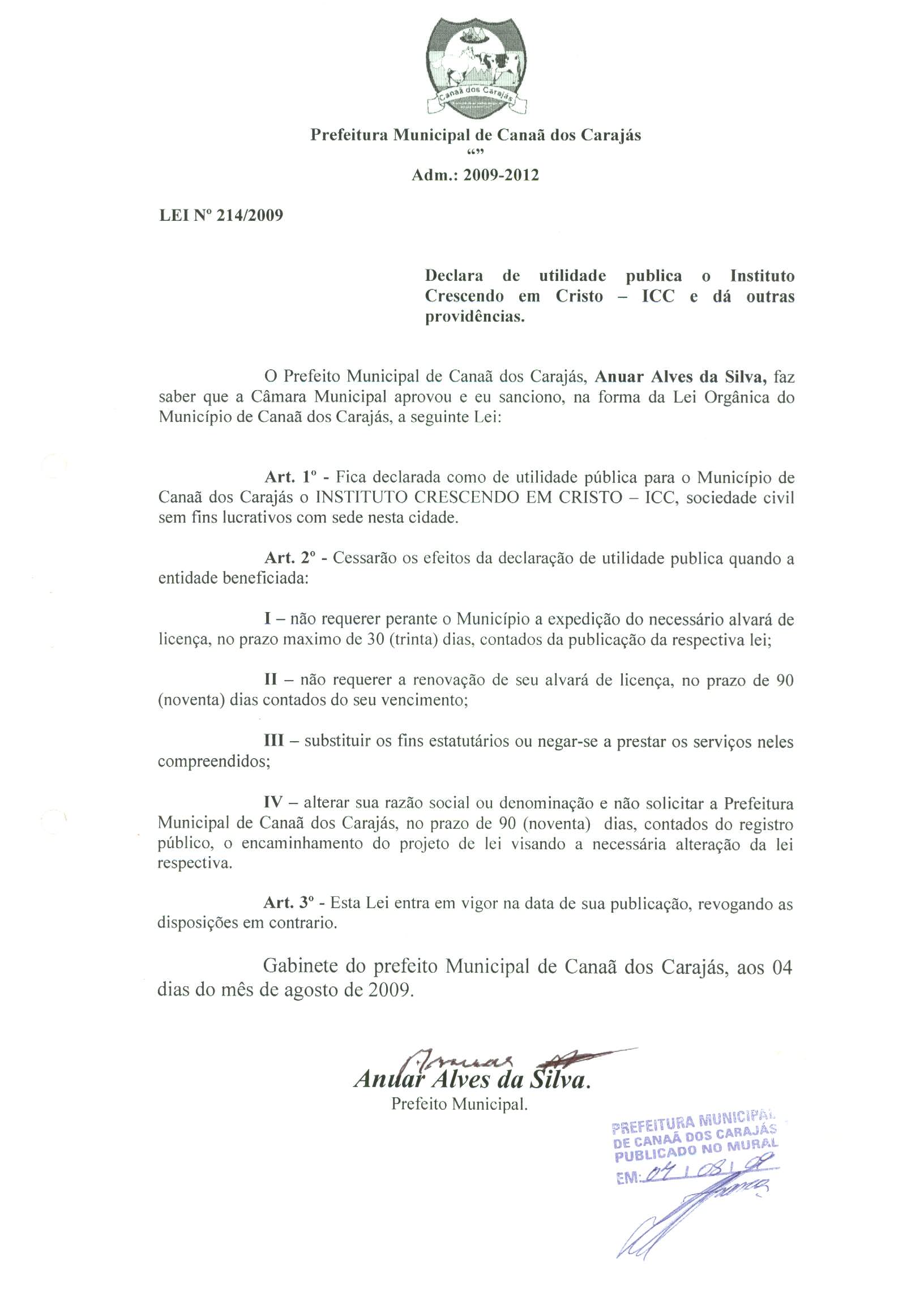 Lei nº 214, de 04 de agosto de 2009