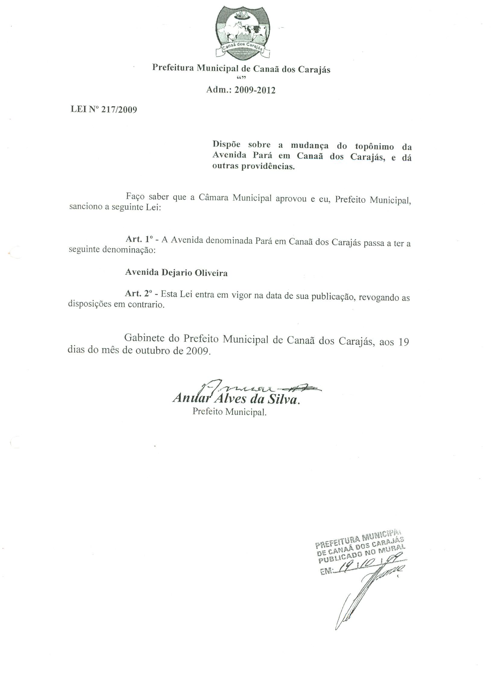 DISPÕE SOBRE A MUDANÇA DO TOPÔNIMO DA AVENIDA PARÁ EM CANAÃ DOS CARAJÁS, E DA OUTRAS PROVIDÊNCIAS.