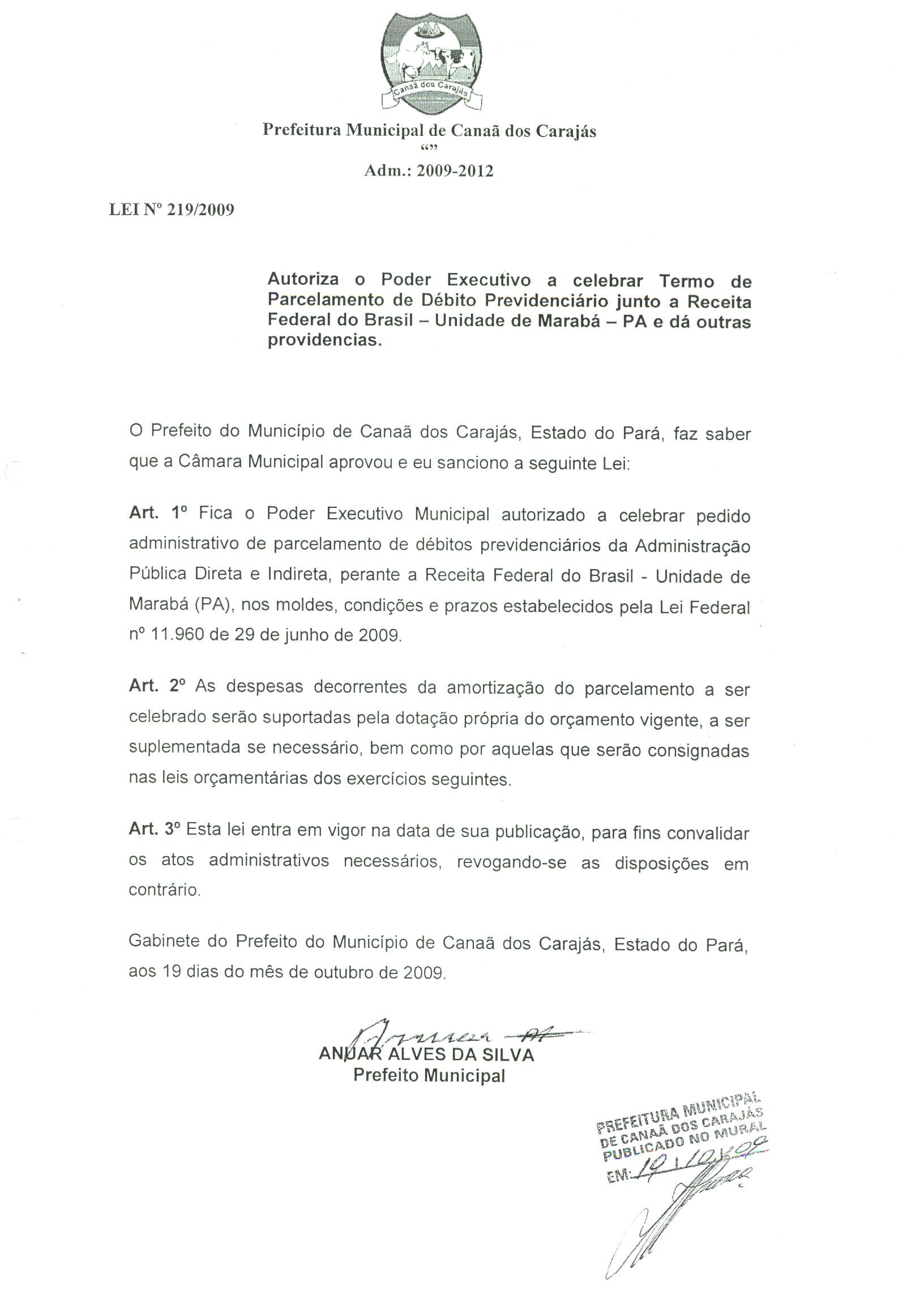 AUTORIZA O PODER EXECUTIVO A CELEBRAR TERMO DE PARCELAMENTO DE DÉBITO PREVIDENCIÁRIO JUNTO A RECEITA FEDERAL DO BRASIL - UNIDADE DE MARABÁ - PA E DÁ OUTRAS PROVIDÊNCIAS.